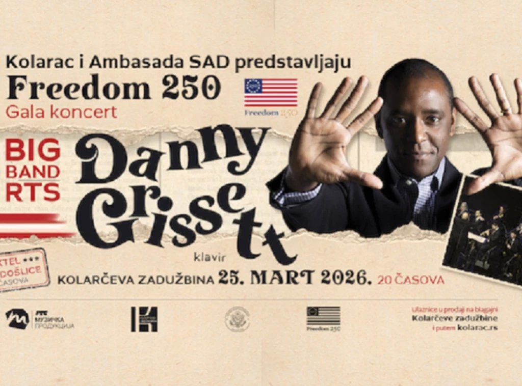 Биг бенд РТС и амерички џез пијаниста Дени Грисет наступиће 25. марта у Великој дворани Коларчеве задужбине, саопштили су организатори. Концерт се одржава у оквиру манифестације ,,Freedom 250″, којом се обележава 250 година од потписивања Декларације о независности Сједињених Америчких Држава 4. јула 1776. године у Филаделфији.