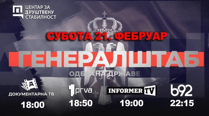 Вечерас од 18 часова на Документарној ТВ приказана је премијера филма „Генералштаб – Одбрана државе“.