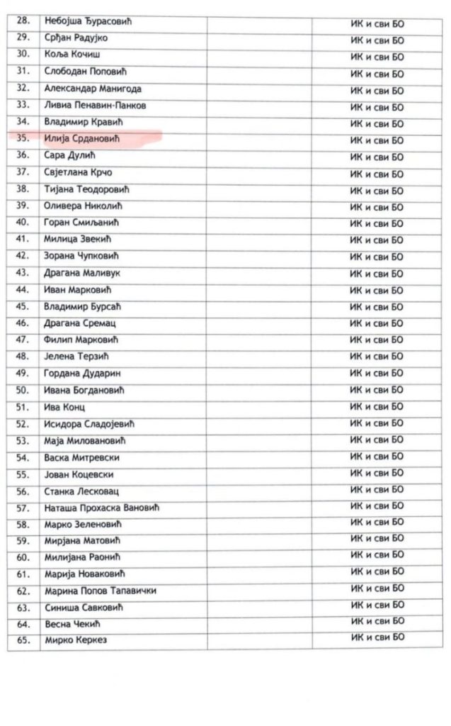 Na kraju, na spisku je i bahati profesor i lekar Ilija Srdanović, koji je 2016. godine postavljen za upravnika Klinike za kardiologiju u Sremskoj Kamenici, ali je 2018. godine smenjen zbog više žalbi zaposlenih, zbog njegovog bahatog ponašanja. On već duže vreme pokušava da zloupotrebi sopstvene studente i uvuče ih u svoje političke kombinacije. Sutra će biti ispred udruženja „KRAJ“.