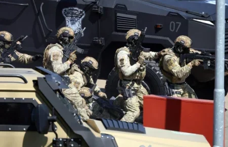 У Центру за обуку у Залужанима данас је одржана показна вежба припадника Специјалне антитерористичке јединице (САЈ), Жандармерије и Управе за ваздухопловство, поводом обележавања Дана полиције Републике Српске.