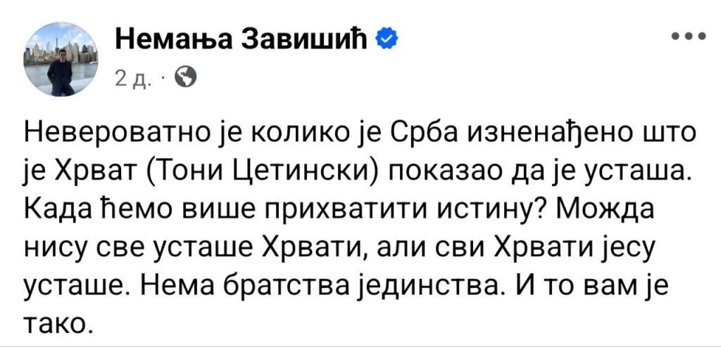 Новинари очигледно проусташки оријентисаних медија, којих је у Хрватској тренутно забрињавајуће велики број, нису могли да опросте изјаву Завишића, за коју сви Срби знају да је стопроцентно тачна. Чак нема ни једну правописну грешку.