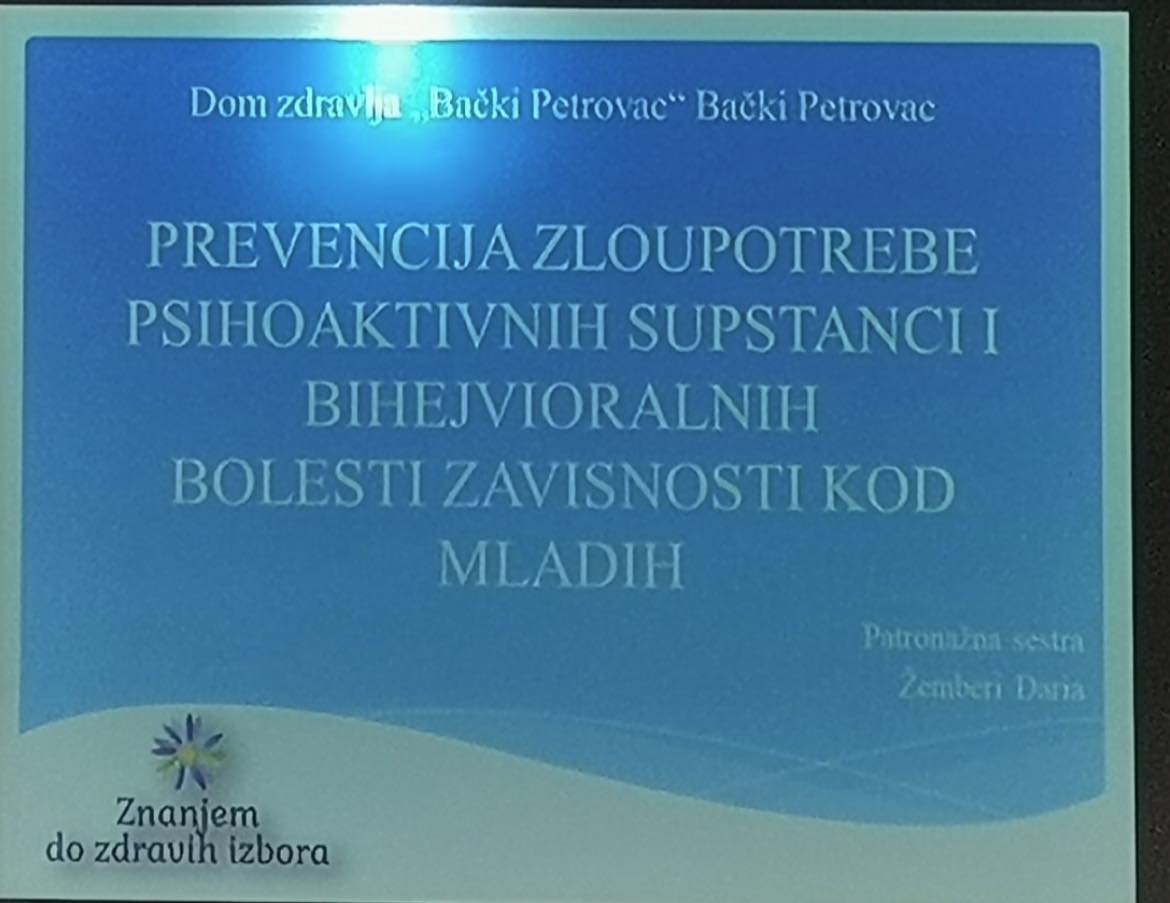 Предавање је одржала патронажна сестра Дарија Жембери из Дома здравља Бачки Петровац, која је на примерен и разумљив начин разговарала са ученицима о штетности психоактивних супстанци, важности здравих избора и како рећи „не“ у ризичним ситуацијама.