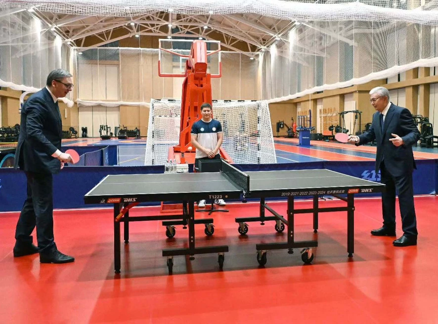 Вучић је на друштвеним мрежама објавио да је имао прилику да одигра партију стоног тениса са казахстанским лидером, уз напомену да се радило о пријатељском надметању.